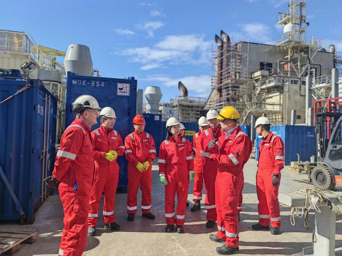 侯大使听取了托勒森及中方负责人关于商业开发和平台运营的情况介绍,积极评价中海油服欧洲钻井公司在加快绿色转型、保障安全生产、深入开拓挪威及欧洲市场方面取得的积极成果,强调海上钻井是高风险行业,希望中海油服切实筑牢安全防线,做到依法合规经营,履行好企业社会责任,展现中国企业良好风貌。