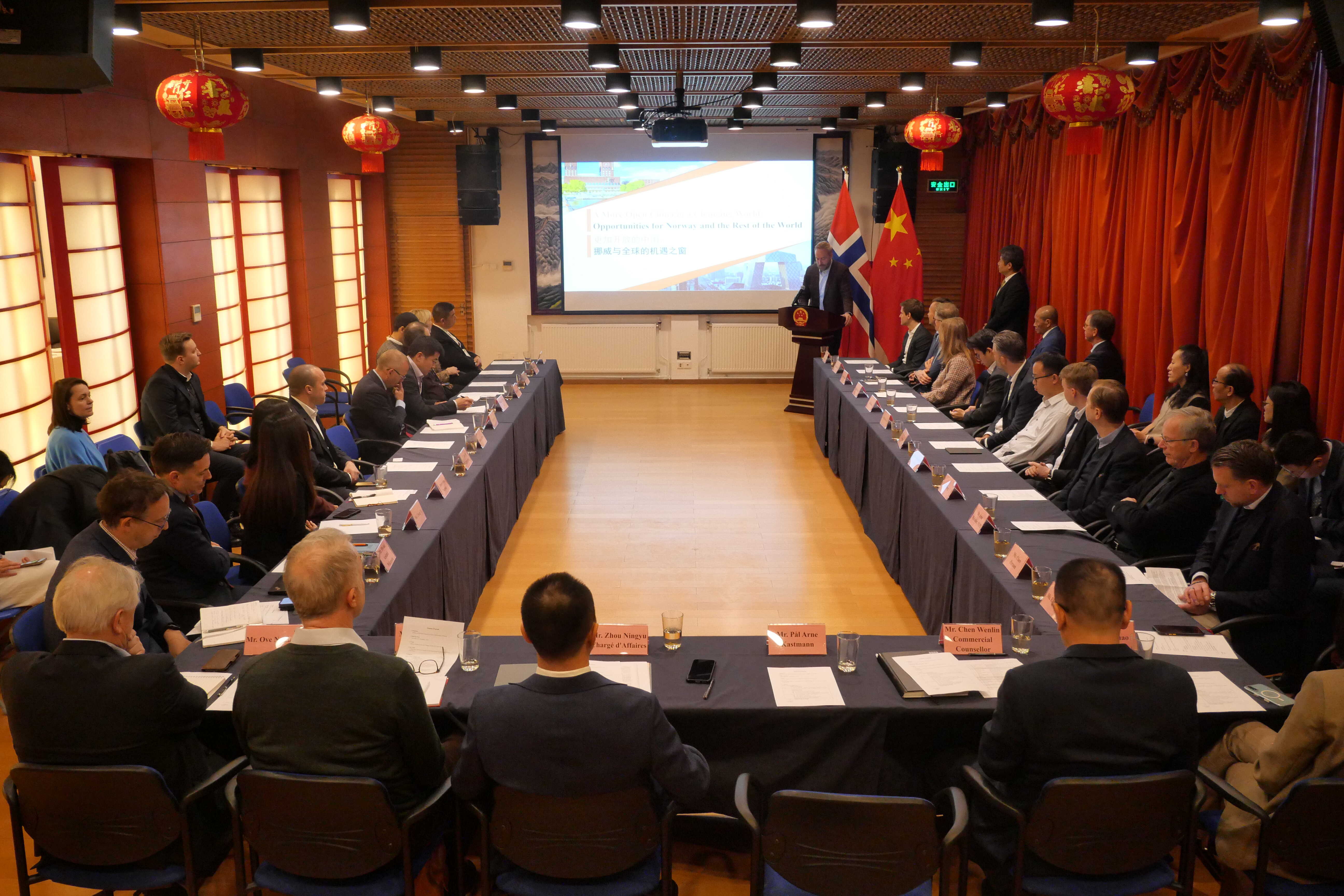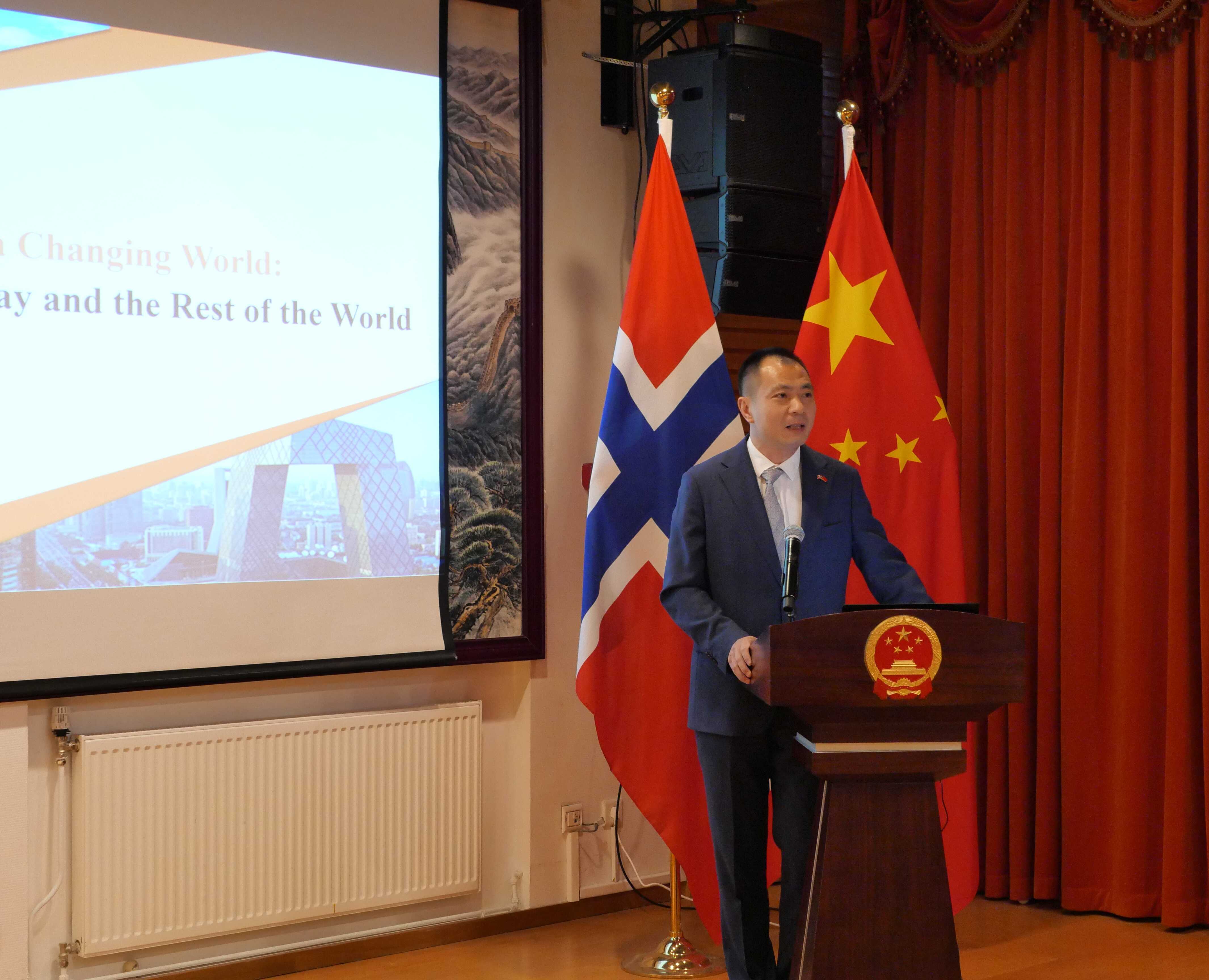 周宁宇临时代办表示,中共二十届四中全会审议通过“十五五”规划建议,擘画中国未来五年的发展蓝图。中国将坚定不移推动高质量发展,坚持扩大高水平对外开放,同各国共享发展机遇,持续为世界注入宝贵的确定性和稳定性。中挪经贸合作前景光明,希望双方深化伙伴关系,充分释放合作潜力,取得更多实际成果。